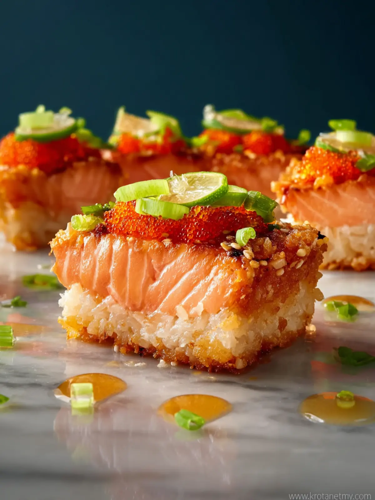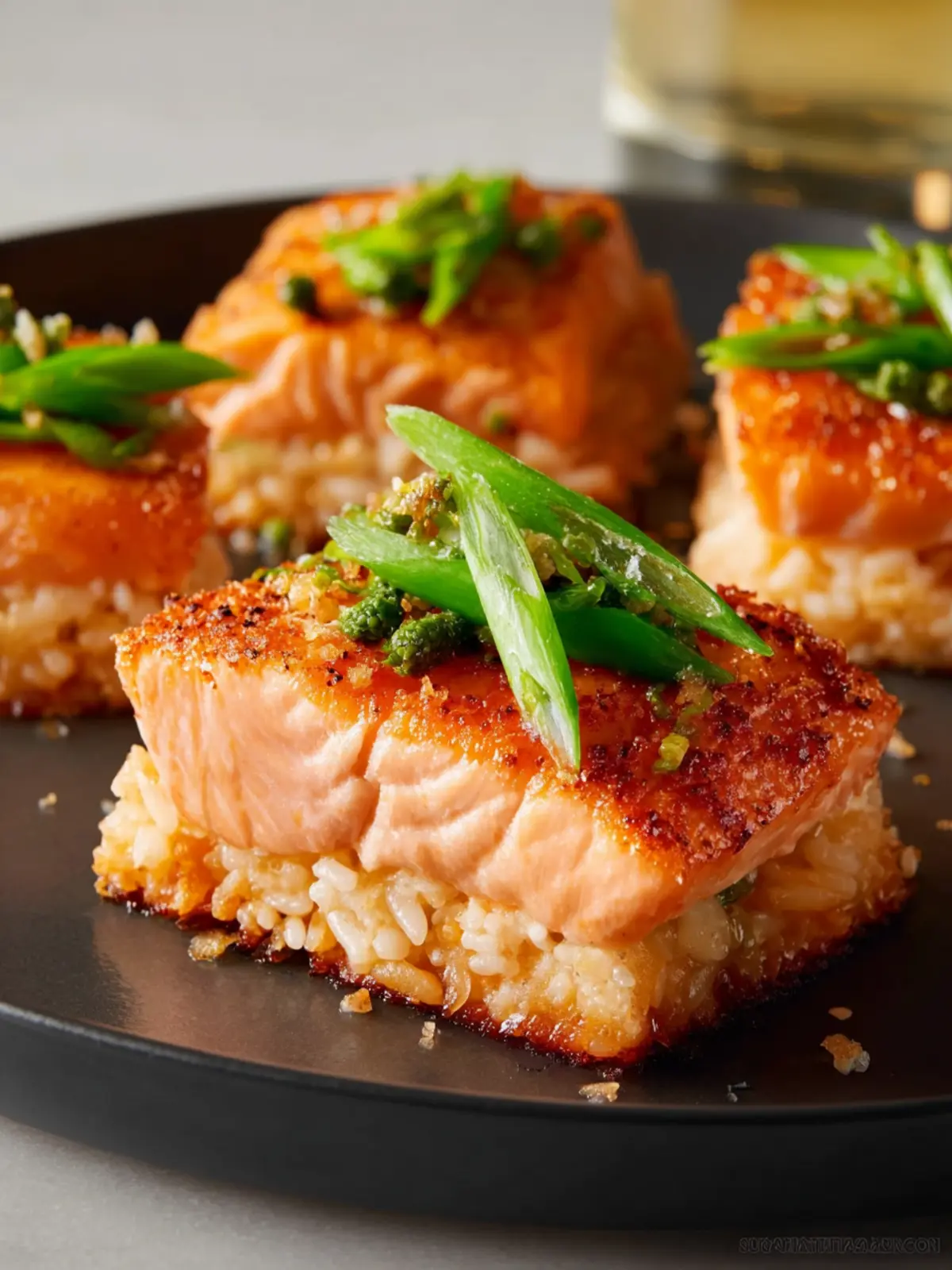 Flavor Harmony: The salty richness of the salmon pairs beautifully with the nutty crunch of the crispy rice. Add in a drizzle of soy sauce or a sprinkle of sesame seeds for that extra layer of umami.