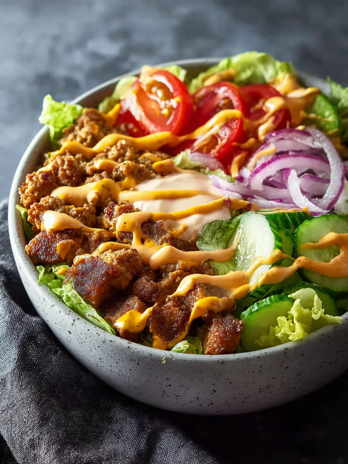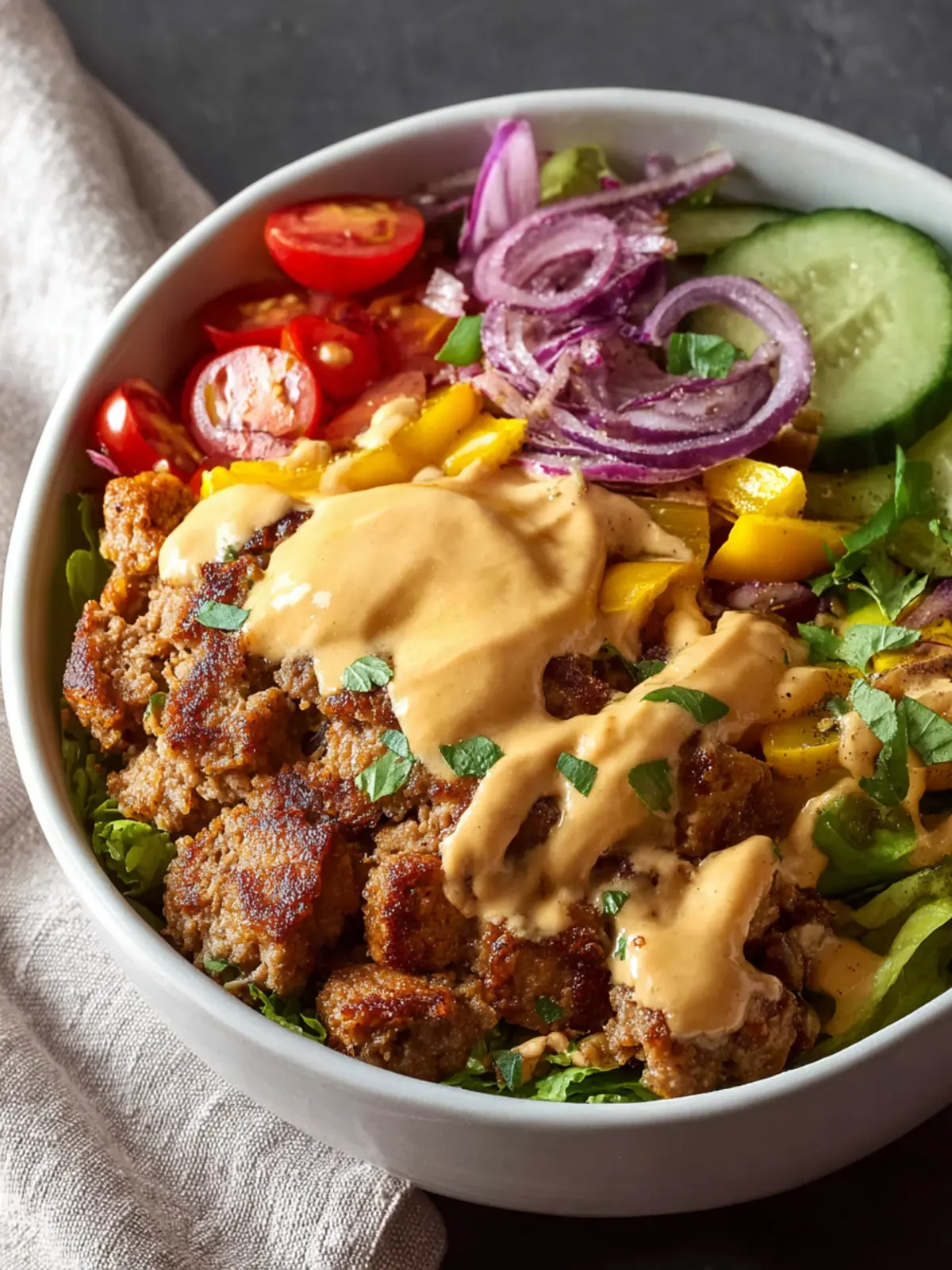 Flavor Explosion: The combination of savory ground meat, crisp fresh veggies, and the creamy special sauce creates a flavor profile that dances on your taste buds. You’ll crave that zesty sauce, which perfectly balances the hearty components of the bowl.