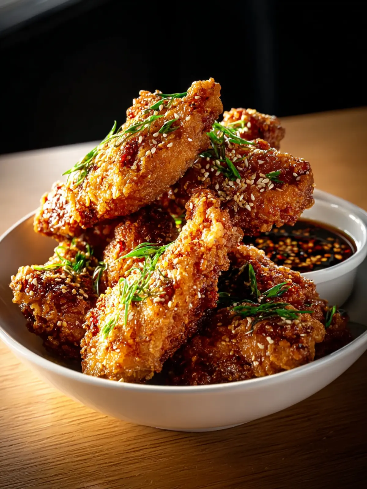 Deliciously crispy fried chicken coated in a flavorful garlic soy marinade.