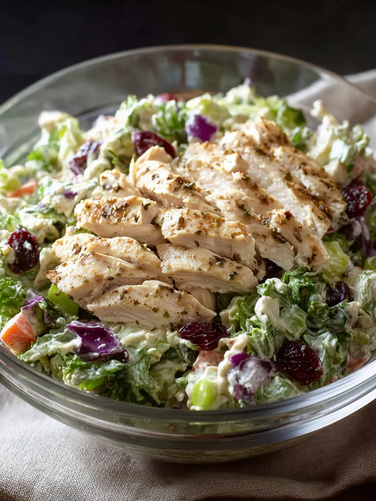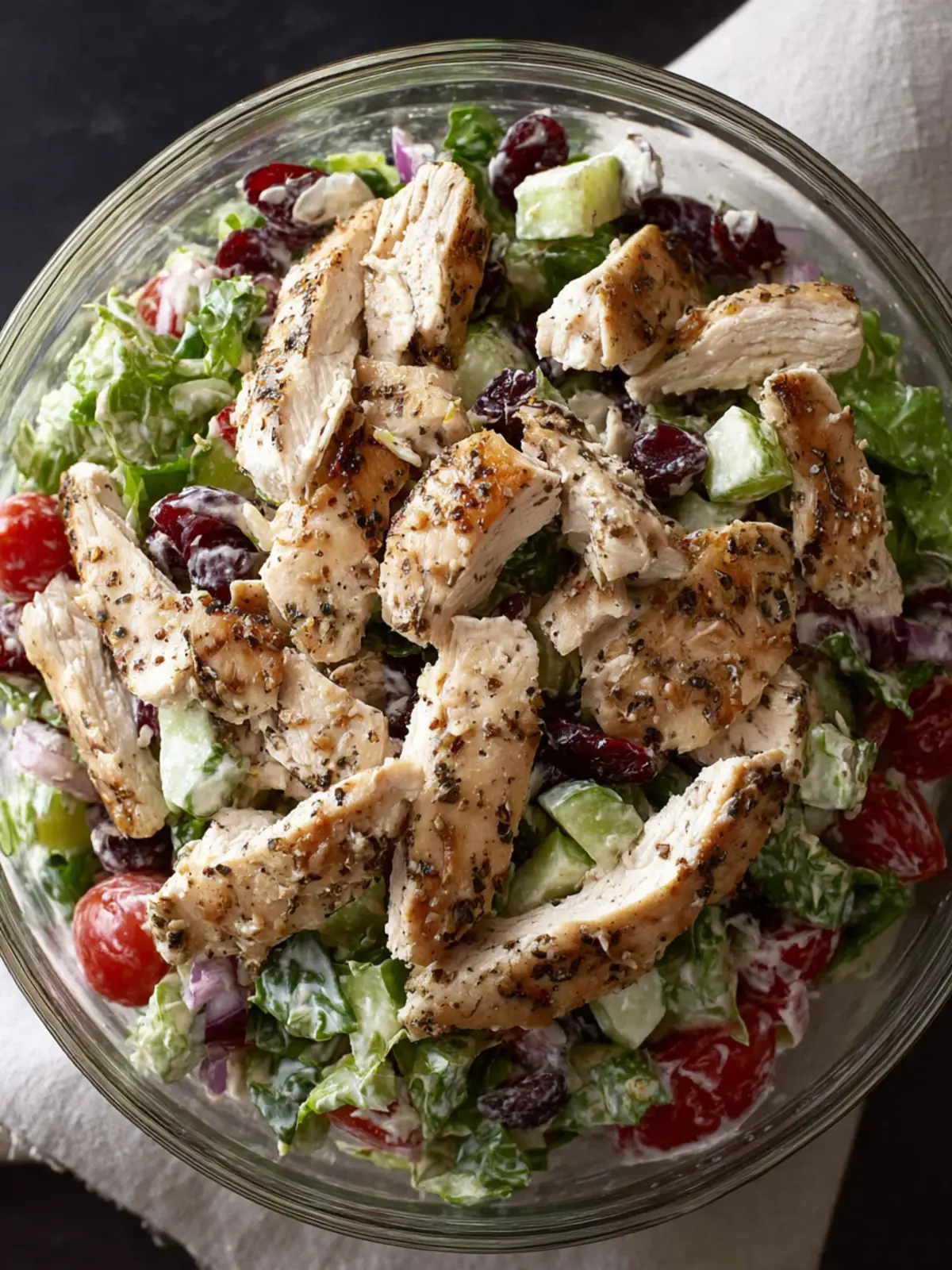 Packed with about 30 grams of protein per serving, this salad is perfect for those looking to build muscle or simply maintain a healthy diet. Chicken provides high-quality protein, essential for tissue repair and overall health.