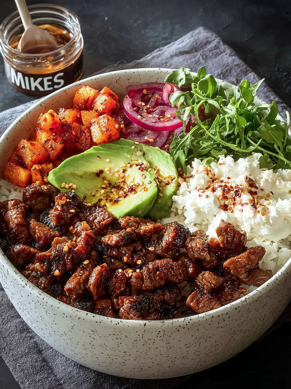 Opt for full-fat cottage cheese for its creamy texture and slightly tangy profile. It serves as a wonderful base, adding protein and richness to the bowl. Its mild flavor complements the boldness of the hot honey and beef perfectly.
