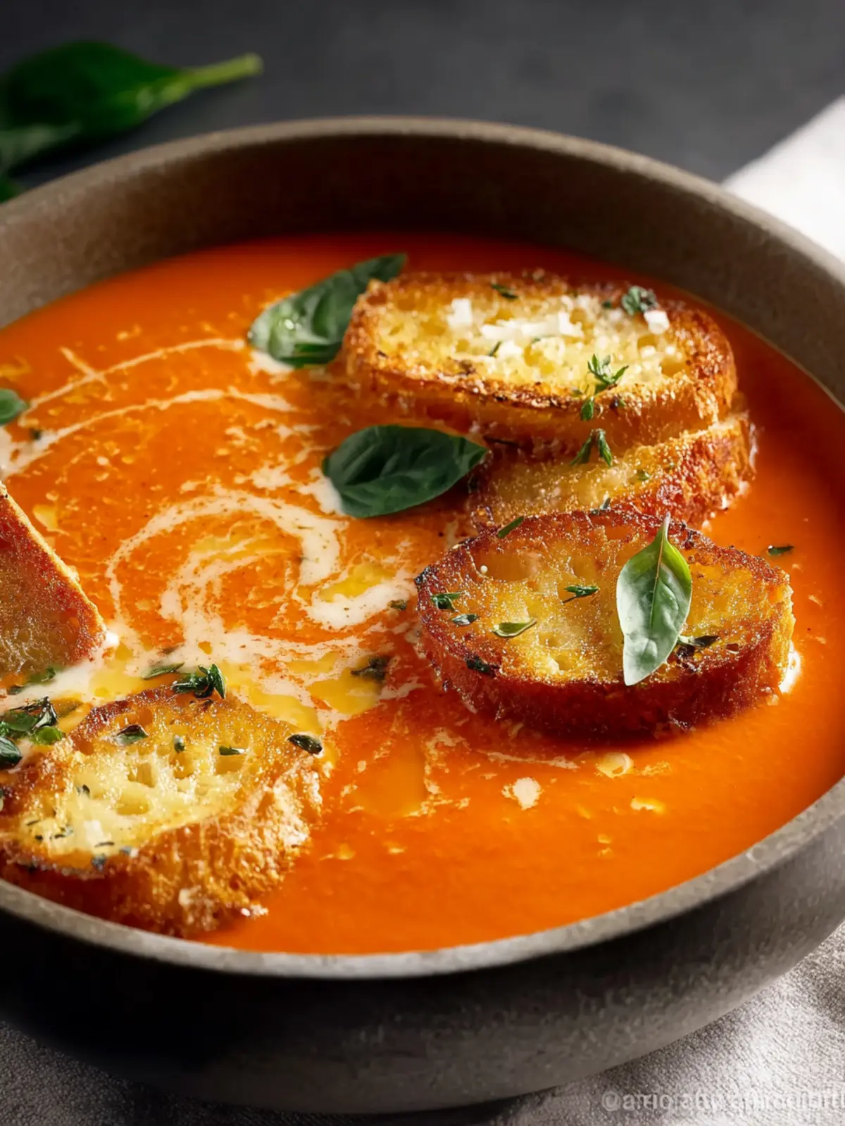 The magic of this dish is its simplicity and the depth of flavor it offers. Using fresh, ripe tomatoes is essential; they form the soul of the soup, bursting with sweetness and acidity. The addition of crispy Gruyère toasts takes it to another level, providing a delightful crunch that contrasts beautifully with the silky soup.
