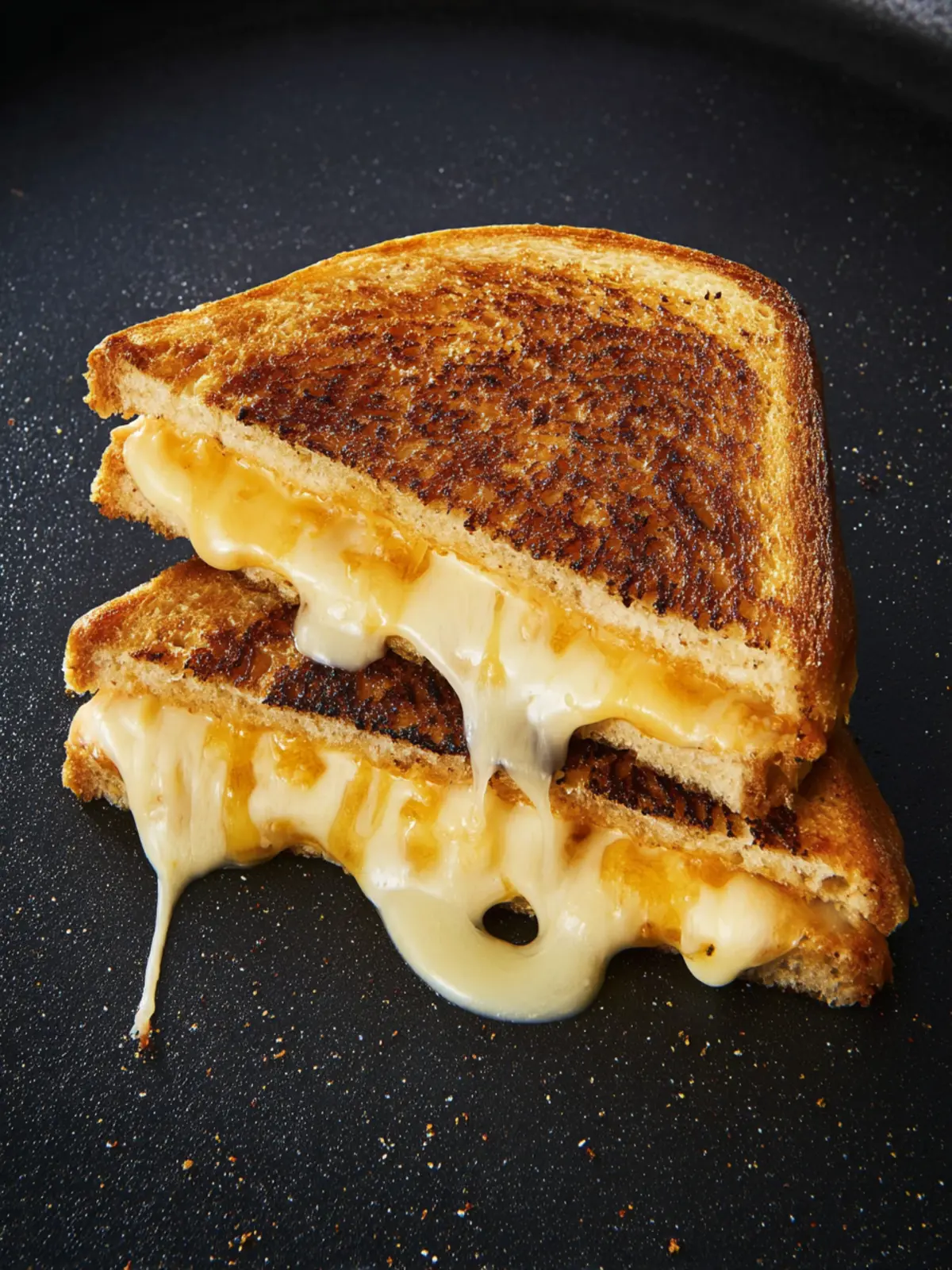 - Remove grilled cheese from the skillet, cut in half, and enjoy immediately.